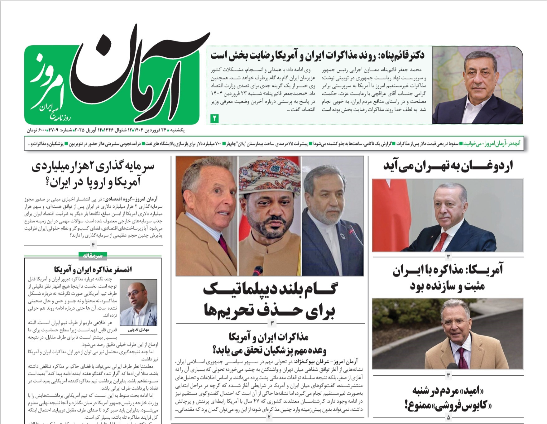 صفحه نخست روزنامه‌ های بیست و چهارم فروردین
