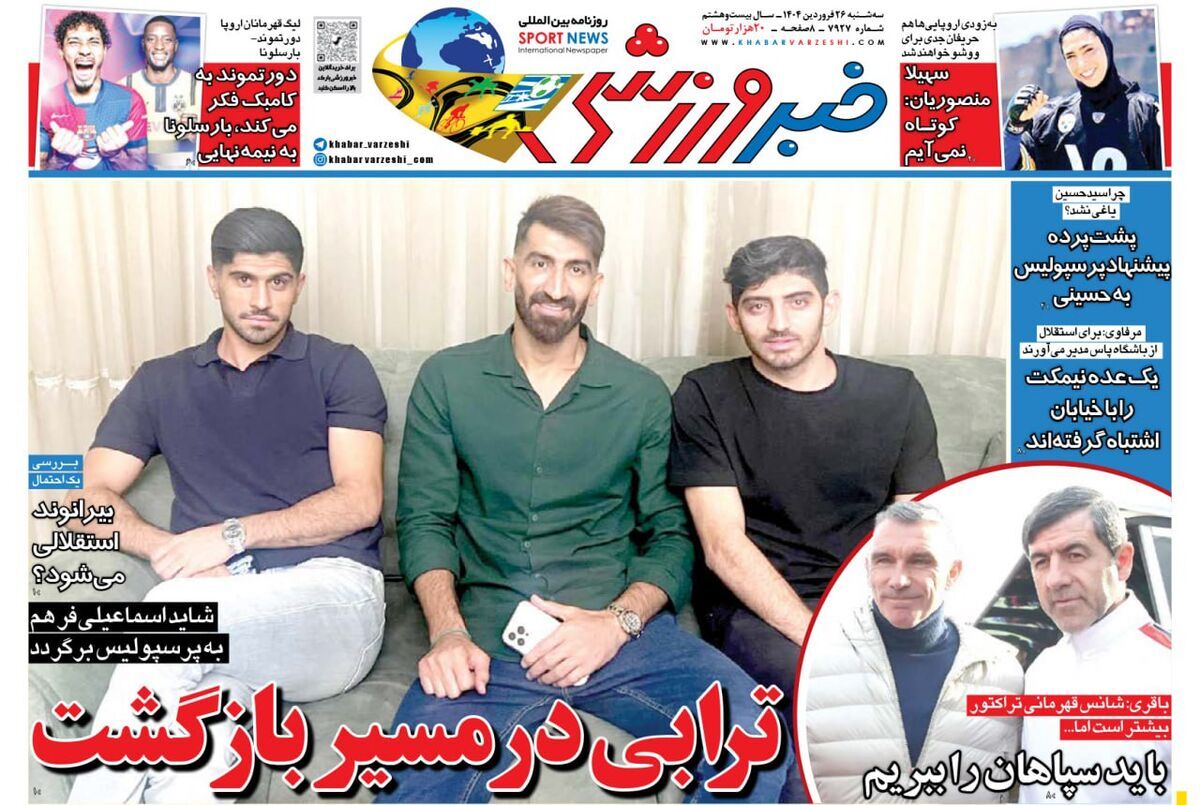 صفحه نخست روزنامه‌ های بیست و ششم فروردین