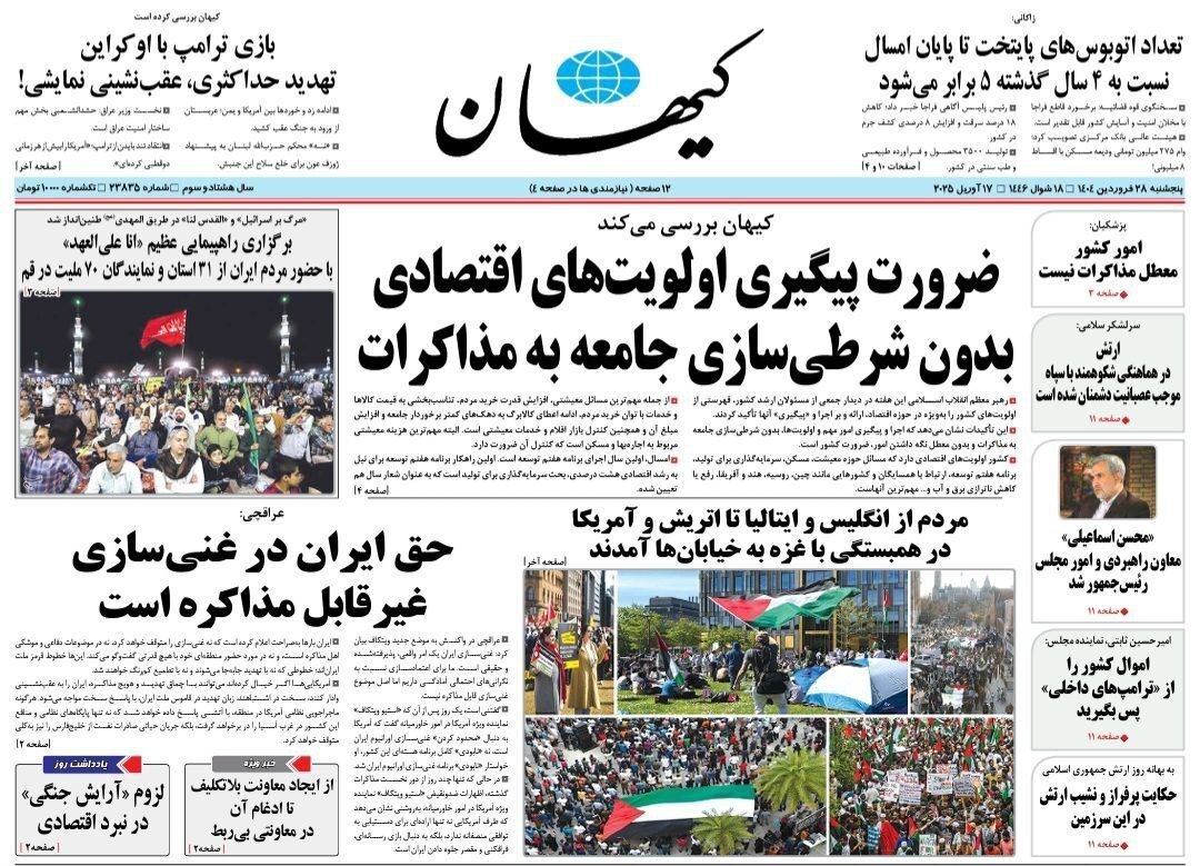 صفحه نخست روزنامه‌ های بیست و هشتم فروردین