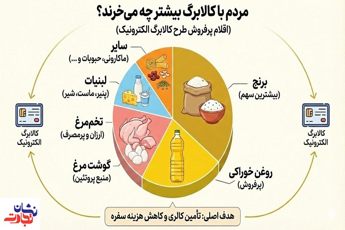 نشان تجارت - هدف اصلی حاکمیت از ارائه کالابرگ به جامعه هدف، تامین کالری و کاهش هزینه سفره مردم است. منبع: هدی کاشانیان