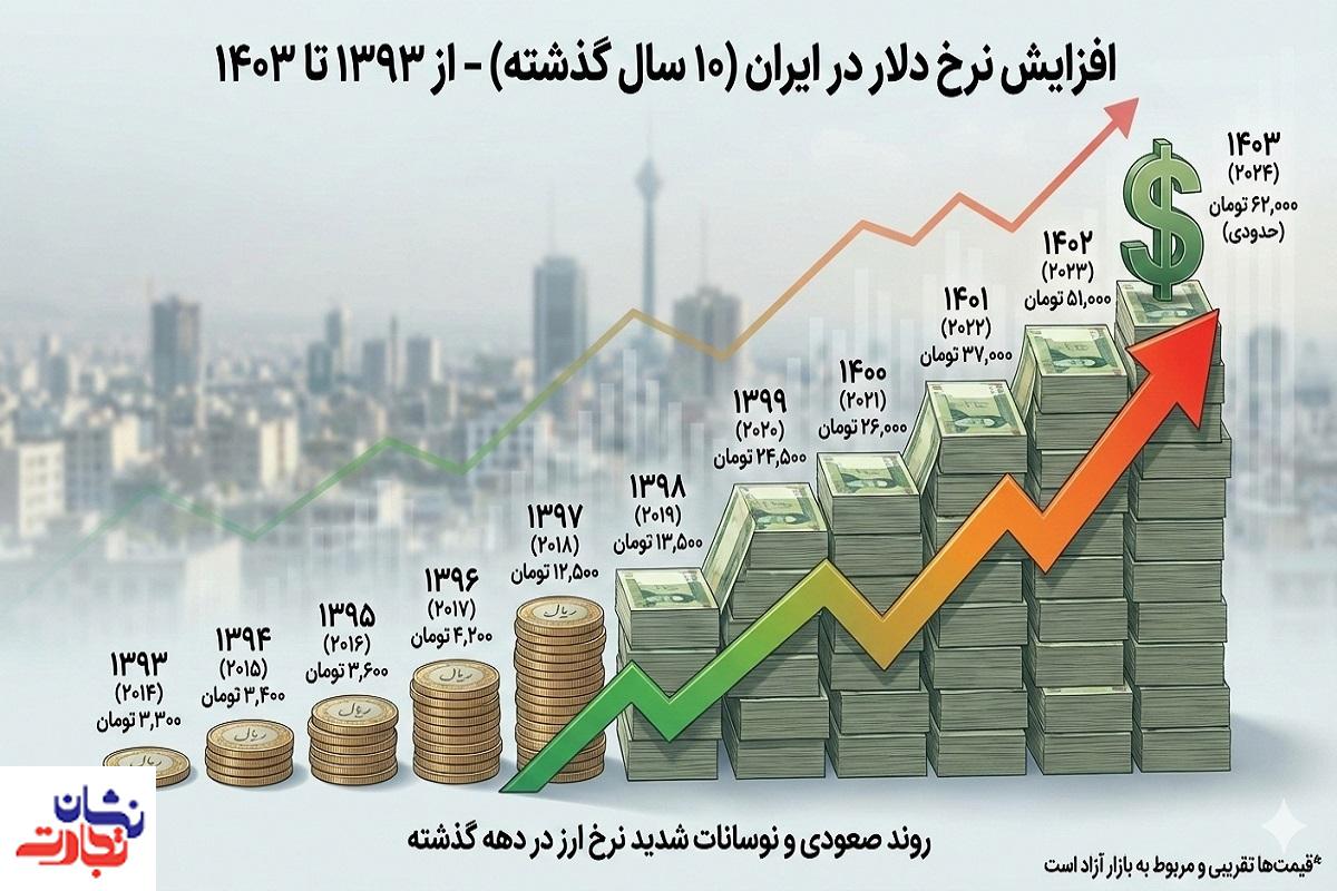 روند افزایش نرخ دلار از سال ۱۳۹۳ تا ۱۴۰۳