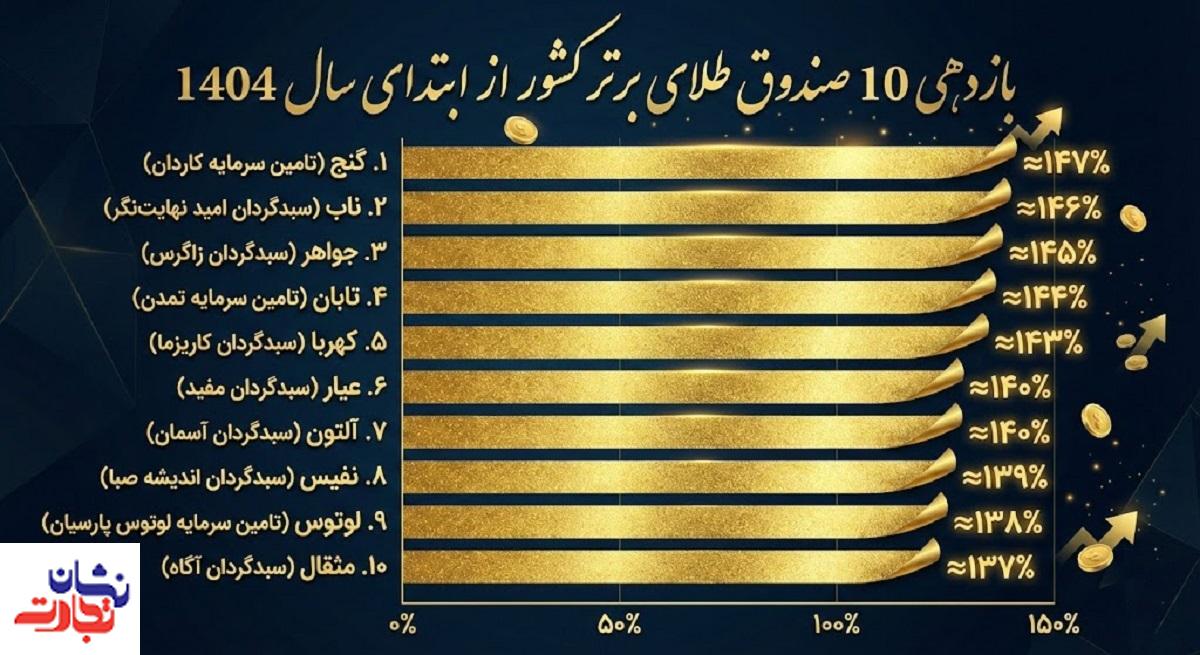 بازدهی ۱۰ صندوق طلای برتر کشور از ابتدای سال ۱۴۰۴