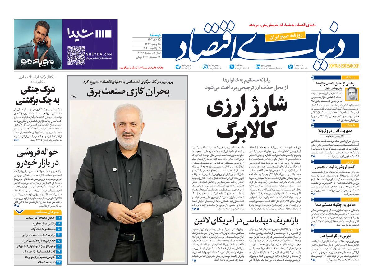 صفحه نخست روزنامه‌ های پانزدهم دیصفحه نخست روزنامه‌ های پانزدهم دی