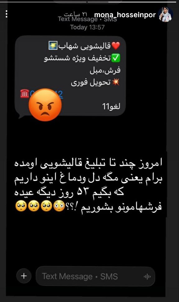 استوری همسر نیکبخت واحدی به واسطه اتفاقات اخیر در ایران