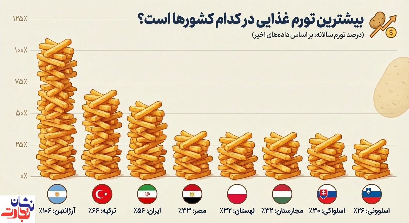 نشان تجارت - امنیت غذایی یک شاخص بزرگ برای ارزیابی عملکرد دولتها است. از اینرو با هشت کشوری که بیشترین تورم غذایی را در شرایط فعلی دارند، آشنا میشوید. طراح: هدی کاشانیان