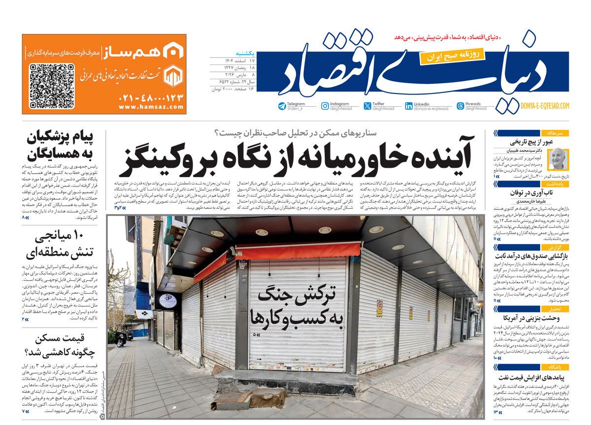 صفحه نخست روزنامه‌ های هفدهم اسفند